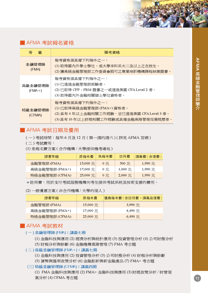 7. 2026年起各級別考試新增「金融科技與應用」科目,【公告】AFMA高級金融管理師2026年6月6日考試起考科變動
