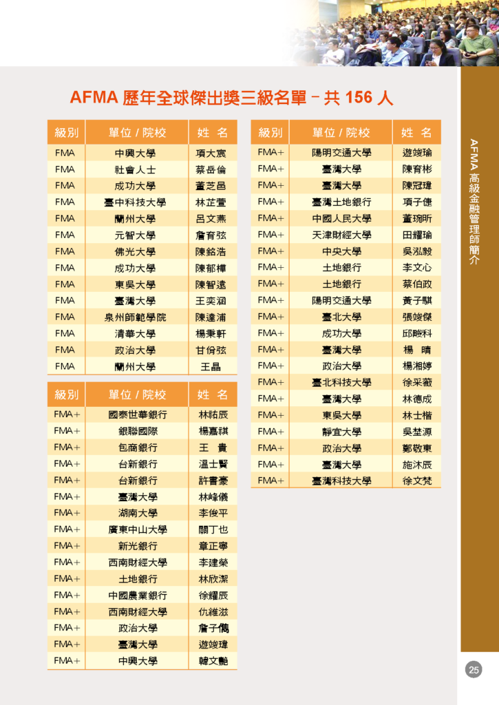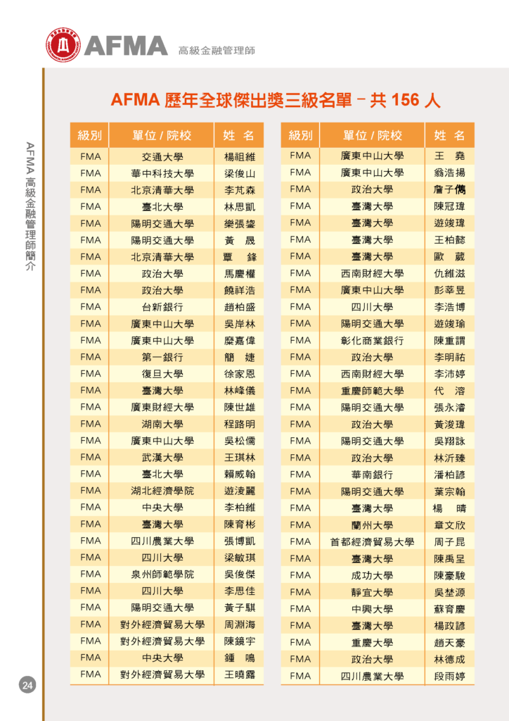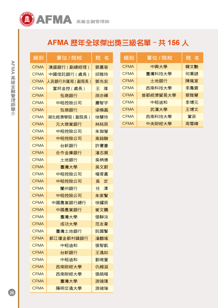 2025/12/6 AFMA高級金融管理師考試榜單與全球傑出獎